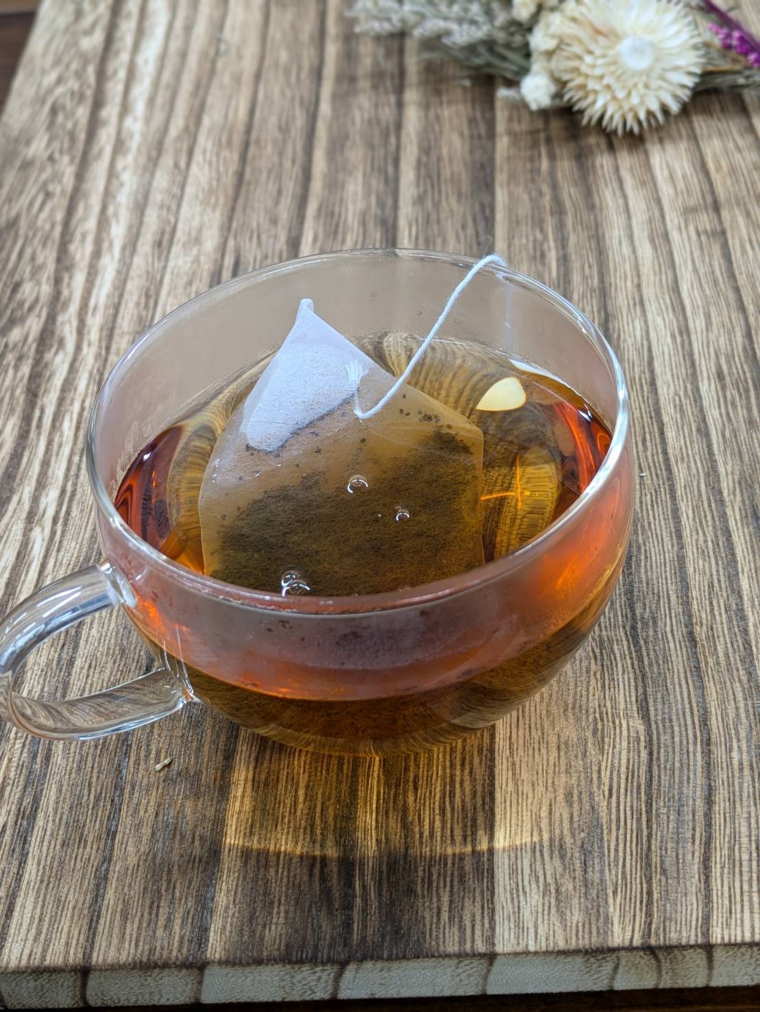 ティーバックでかき混ぜ、取り出したら出来上がりです。
